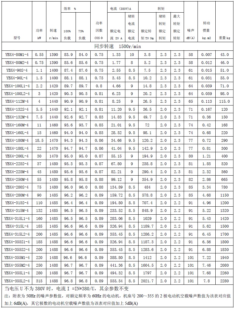 額定電壓:380、660、380/660V、400、690、400/690V。(注:基本系列 3kW 及以下電壓 380V 為 Y 接,3kW 以上電壓 380V 為△接;也可按特殊電壓制造)