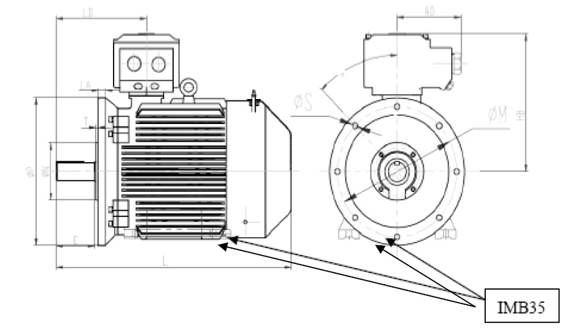 B35—機座帶底腳、端蓋有凸緣;